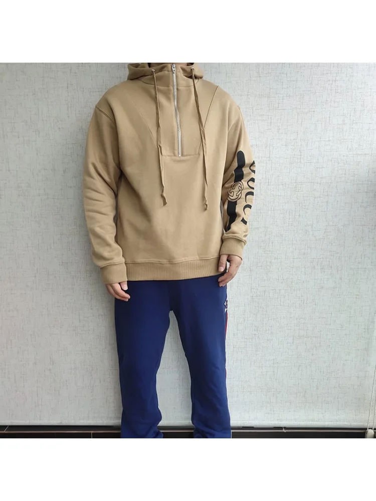 - Стильный дизайн: Худи имеет узнаваемый дизайн Gucci с логотипом на рукавах, что придает ему элегантность и индивидуальность.
