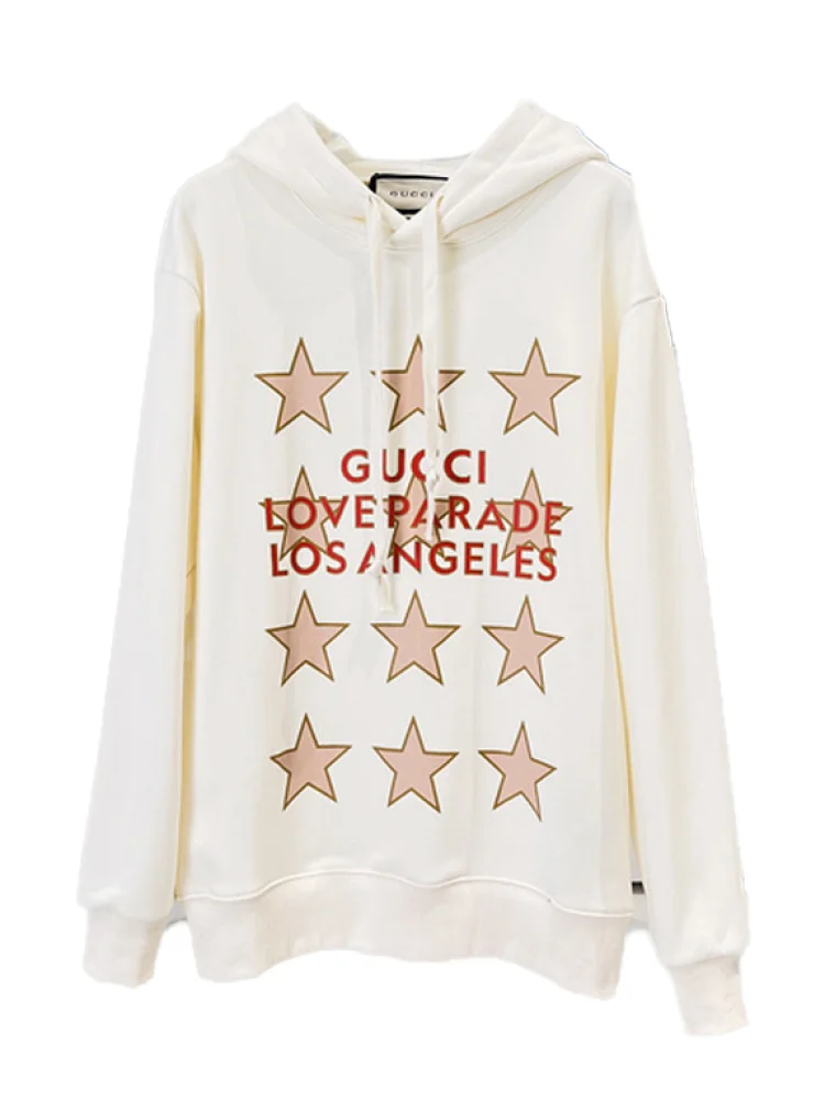 Худи Gucci Parade Of Stars "White" - это стильная и комфортная одежда, которая станет отличным дополнением к вашему гардеробу. Она выполнена из высококачественного материала, обеспечивающего мягкость и приятную по ощущениям текстуру. Преимущества товара:- Элегантный дизайн: Худи имеет привлекательный внешний вид с небольшими звездами и логотипом Gucci, что придает ему уникальности и стиля.