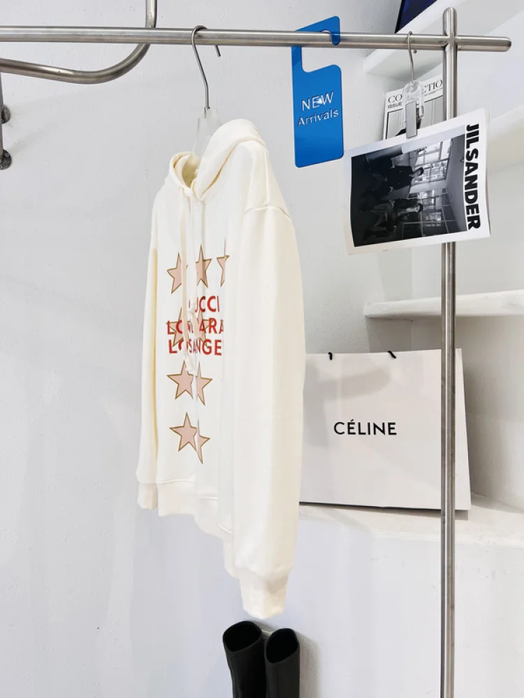 - Элегантный дизайн: Худи имеет привлекательный внешний вид с небольшими звездами и логотипом Gucci, что придает ему уникальности и стиля.