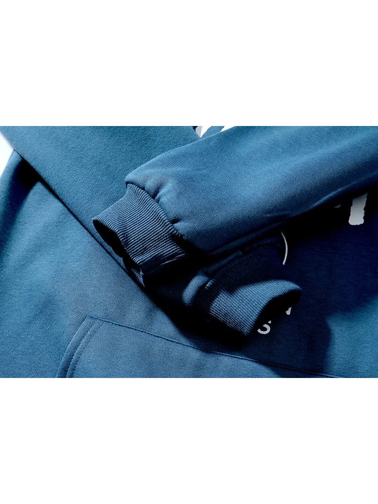 - Универсальный дизайн: классический темно-синий цвет и минималистичный логотип делают этот худи идеальным выбором для любого стиля и сезона.