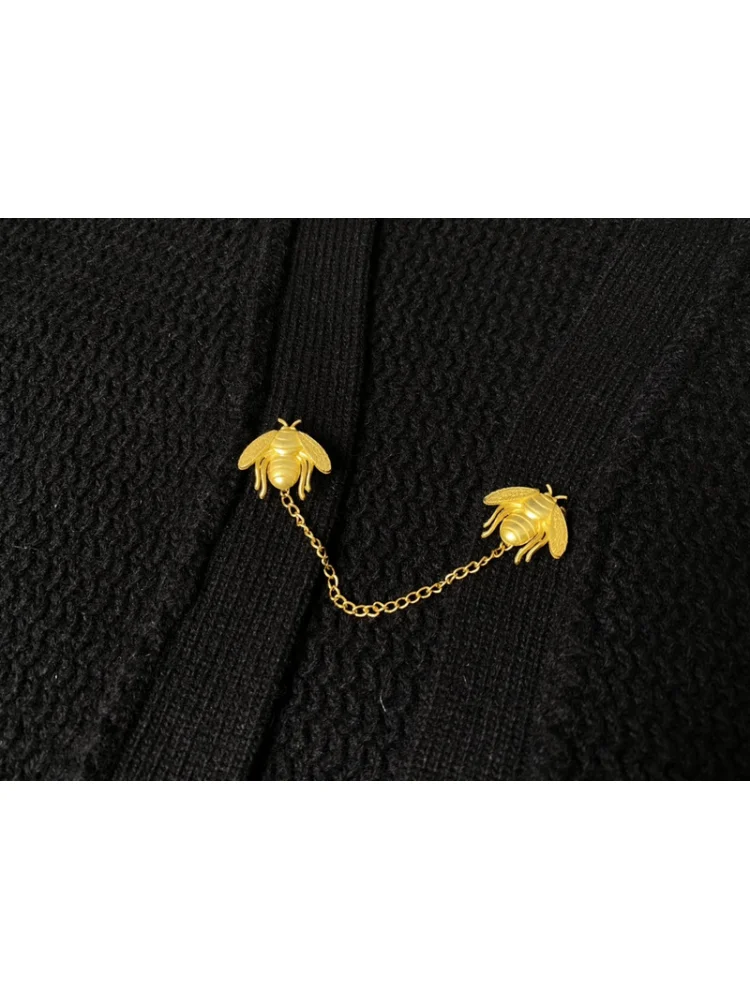 - Стильный дизайн: черный цвет и наличие риветов делают этот кардиган элегантным и модным элементом гардероба.