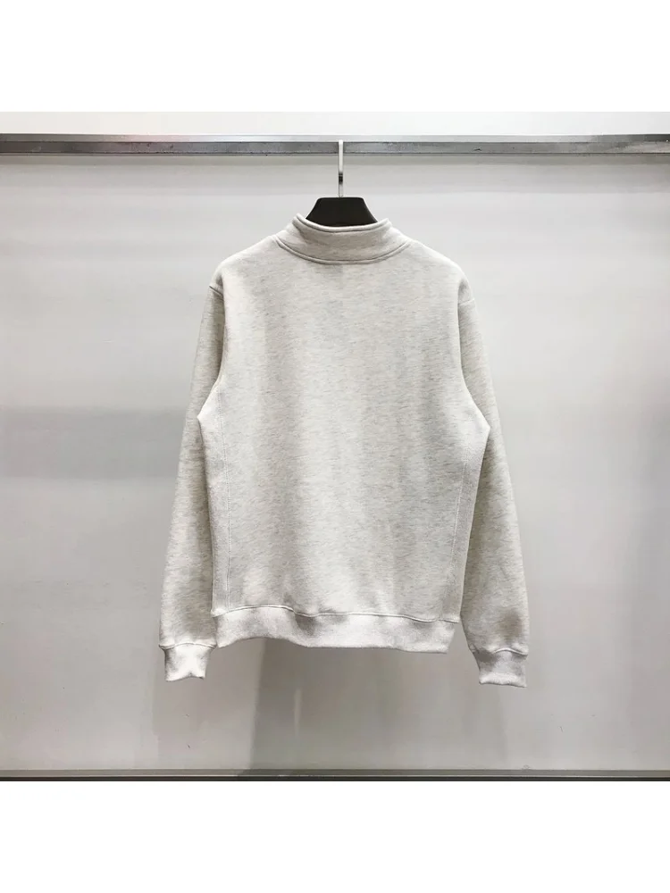 - Стильный дизайн: бело-серая цветовая гамма и логотип на молнии придают свитшоту модный и современный вид.