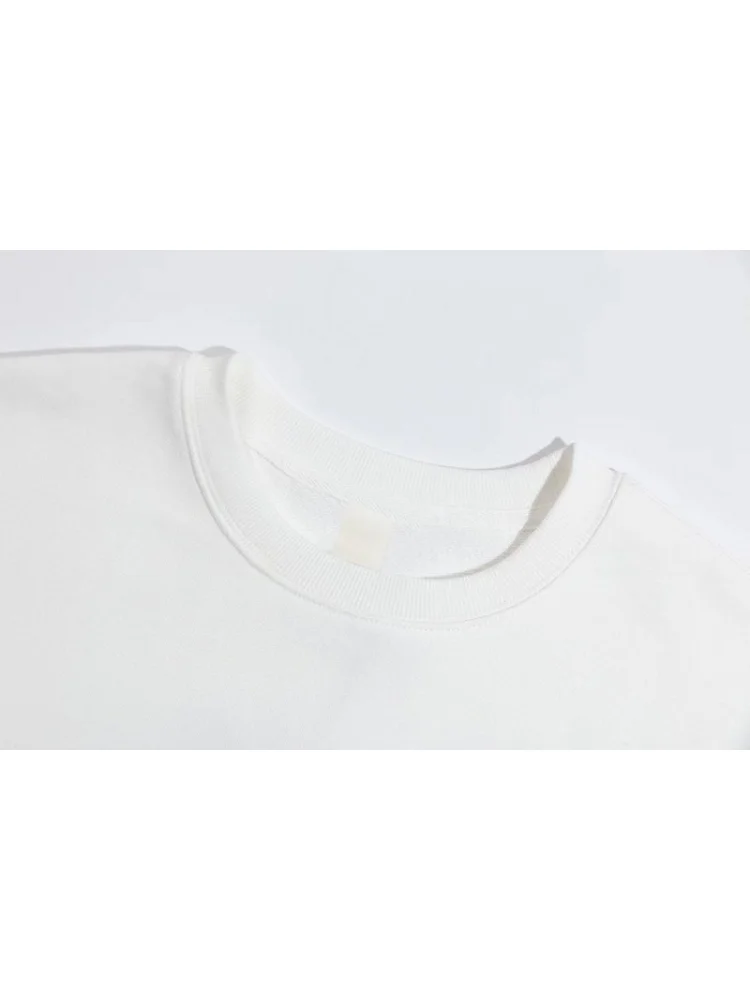 - Универсальность: благодаря своему дизайну и нейтральному белому цвету, свитшот можно сочетать с различными стилями одежды.