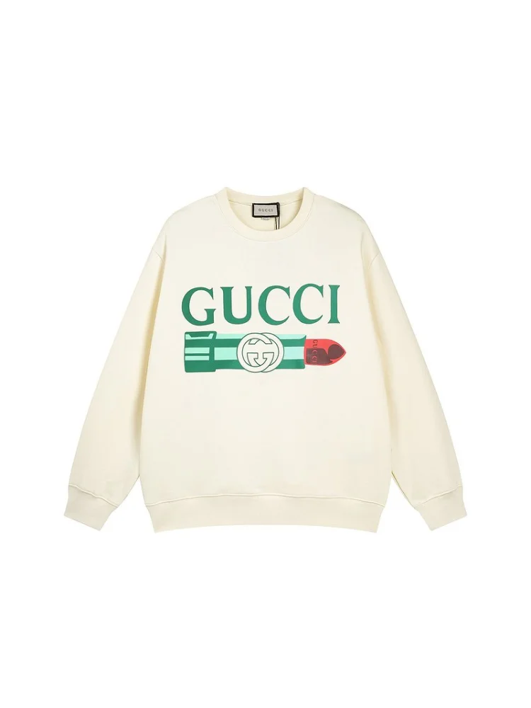 Свитшот Gucci Print Lipstick "Beige" - стильный и модный свитшот с принтом помады Gucci. Изготовлен из высококачественного материала, который обеспечивает комфорт и долговечность. Свитшот имеет приталенный крой и удобные рукава, что придает ему элегантный вид. Прекрасно сочетается с различными стилями одежды и может использоваться как в повседневных, так и в более формальных образах. Преимущества товара:- Стильный дизайн с принтом помады Gucci