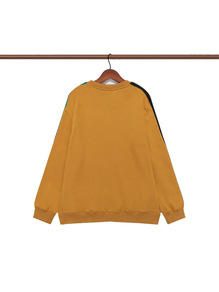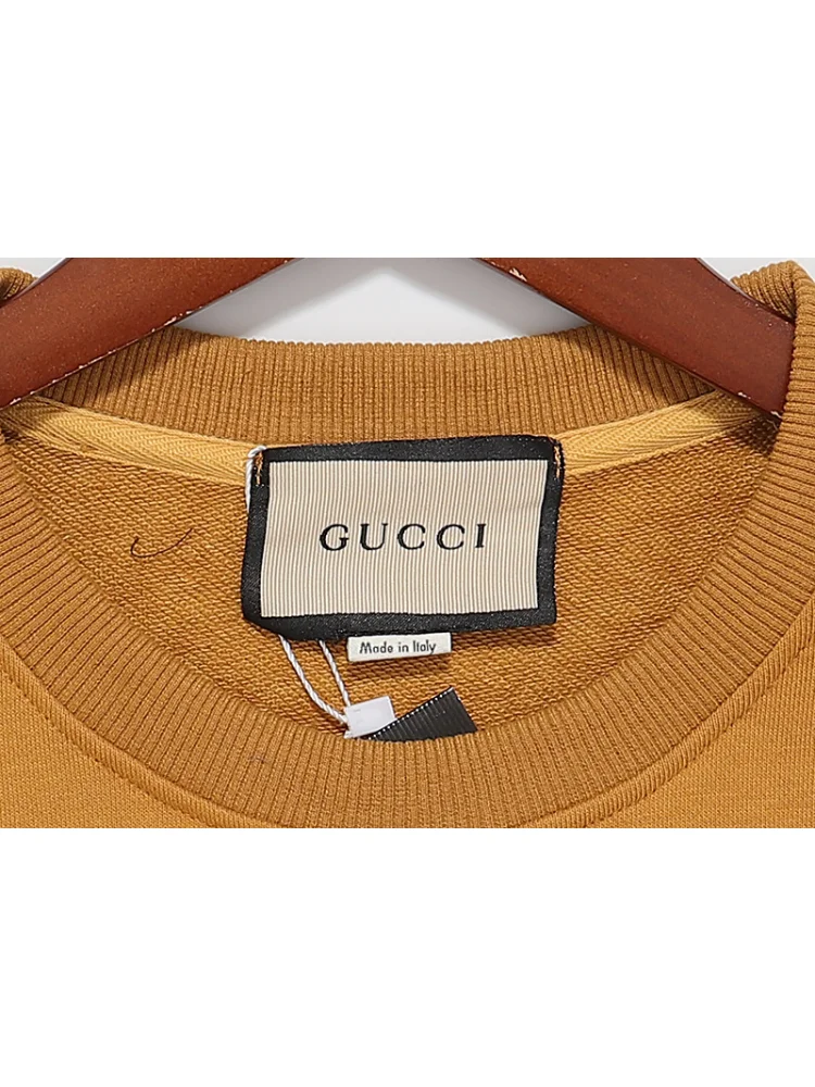 2. Стильный дизайн: сочетание коричнево-желтых оттенков, логотипа Gucci и полосок на рукаве делает этот свитшот модным и узнаваемым.