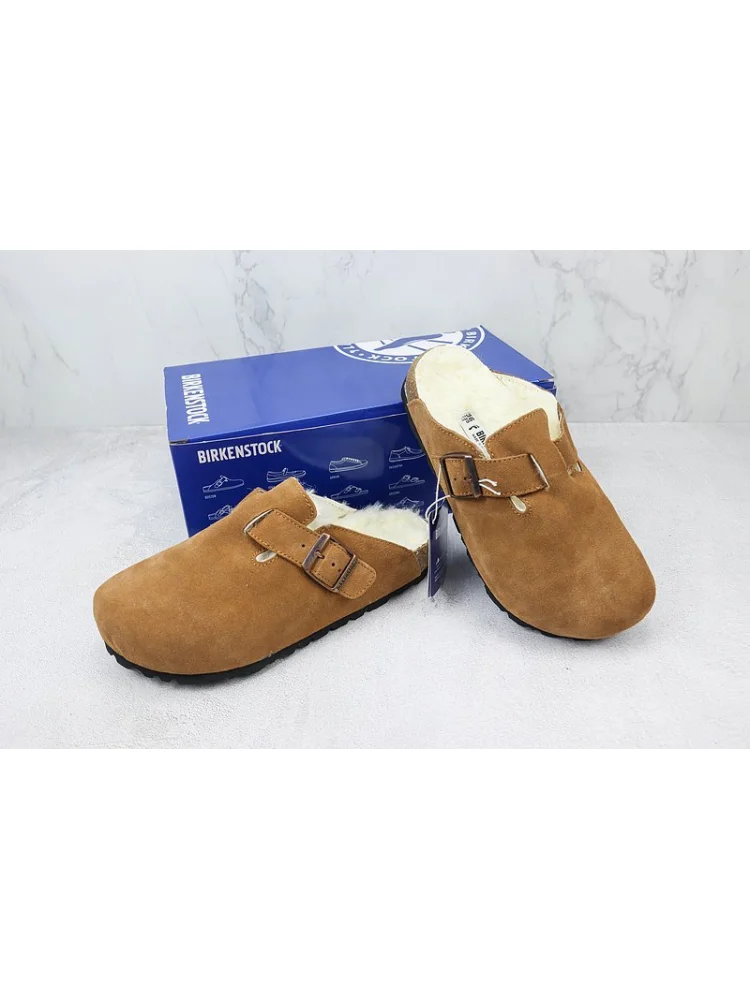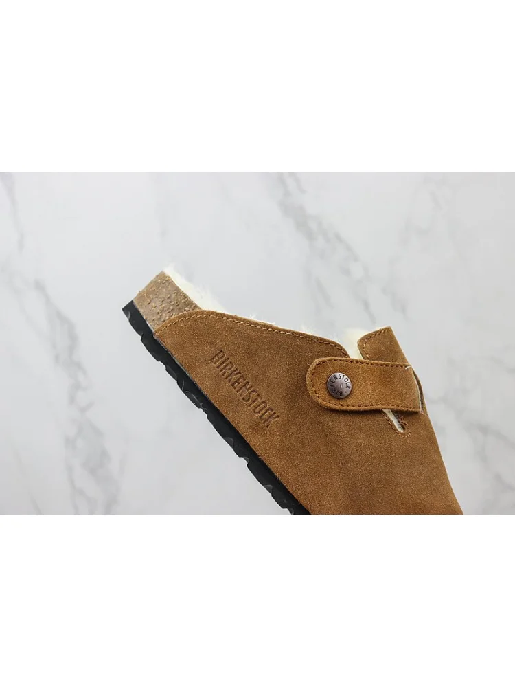 Birkenstock Boston Shearling "Mink" - удобные и стильные тапочки с меховой отделкой.- Мягкий и уютный мех обеспечивает комфорт и тепло в холодную погоду