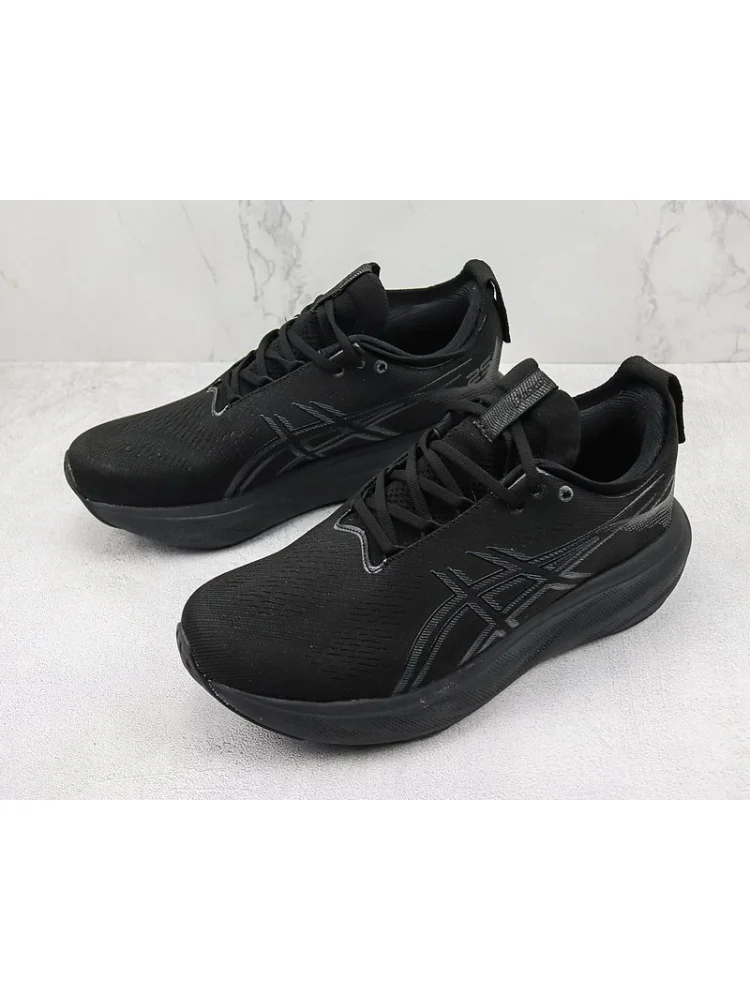 Asics Gel-Nimbus 25 "Triple Black" - это стильные и комфортные кроссовки для бега, выполненные в черном цвете.- Превосходная амортизация: обеспечивает мягкость и комфорт при каждом шаге
