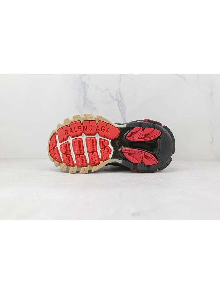 Кроссовки Balenciaga Track в цветах "Red/Black/Beige" - стильные и комфортные кроссовки для повседневной носки.- Удобство: обеспечивает комфорт при ходьбе благодаря удобной подошве