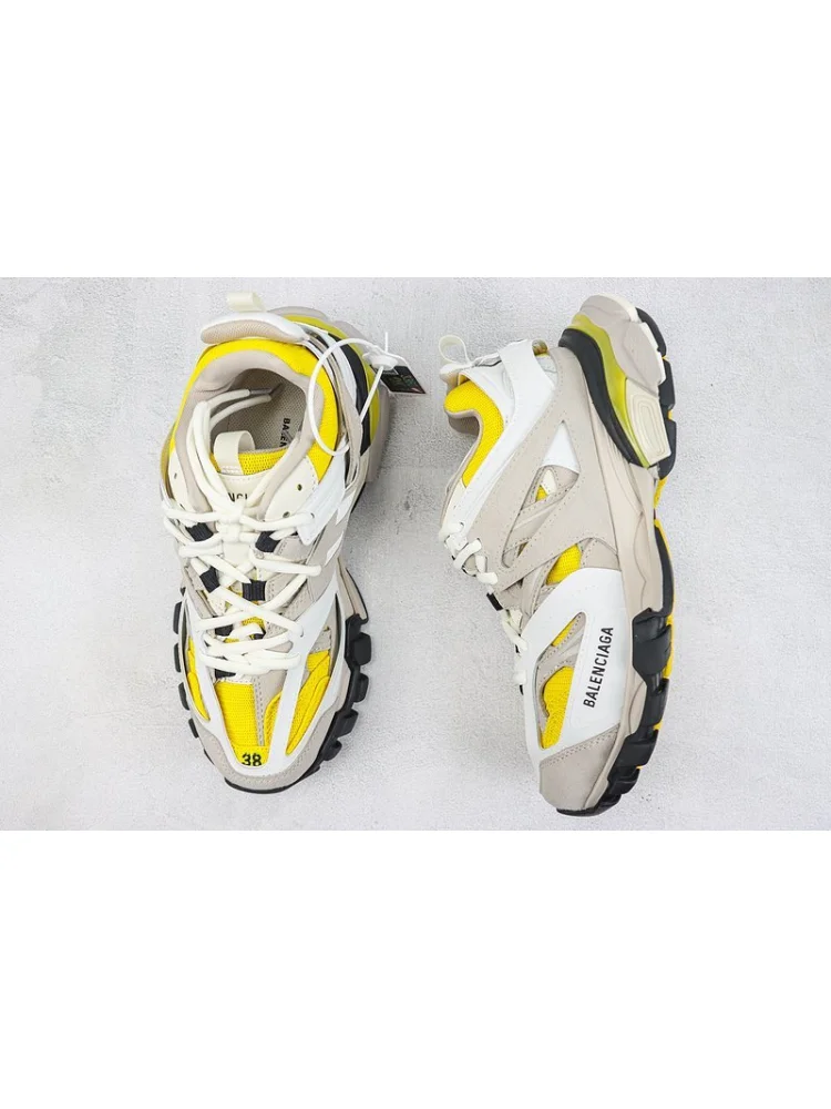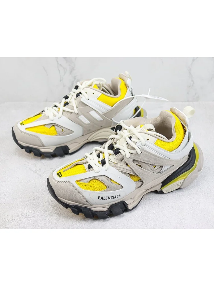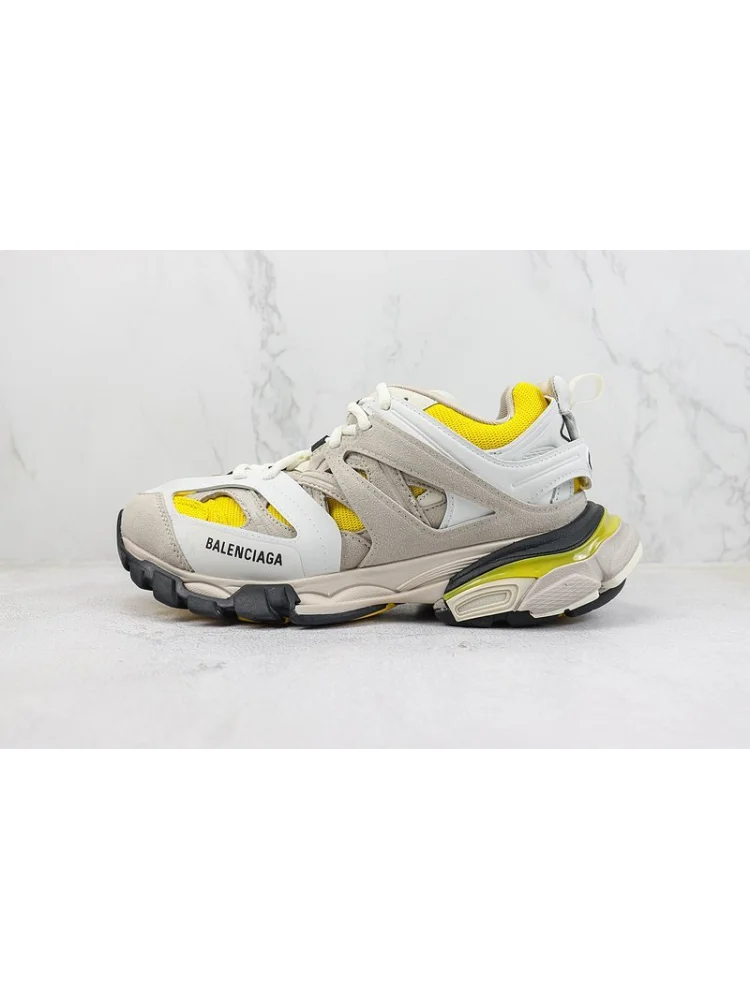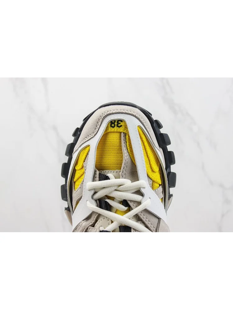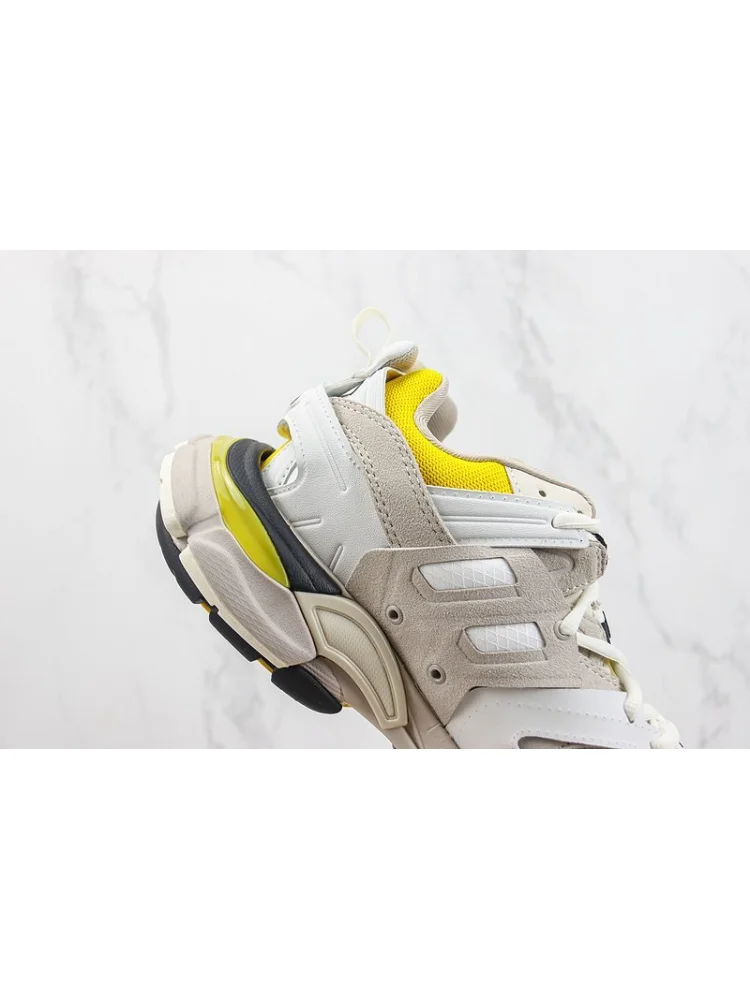 Balenciaga Track "Yellow/White/Beige" - стильные кроссовки от известного бренда, выполненные в сочетании яркого желтого, белого и бежевого цветов. Преимущества товара:- Удобство: обеспечивают комфорт при ходьбе благодаря удобной подошве и поддерживающему верху
