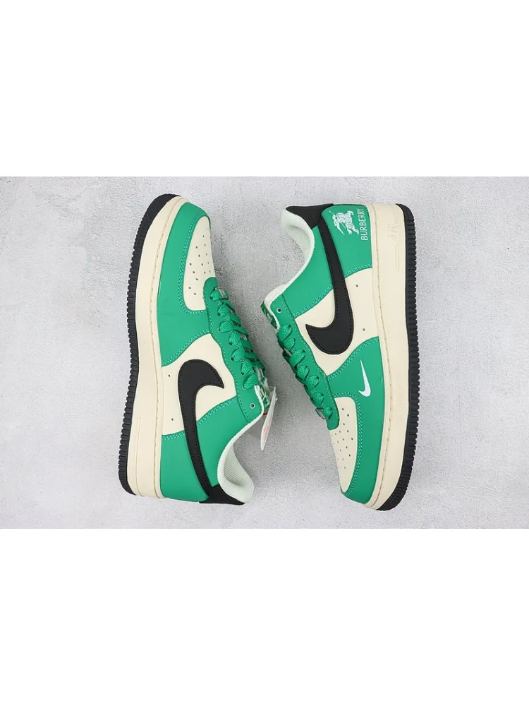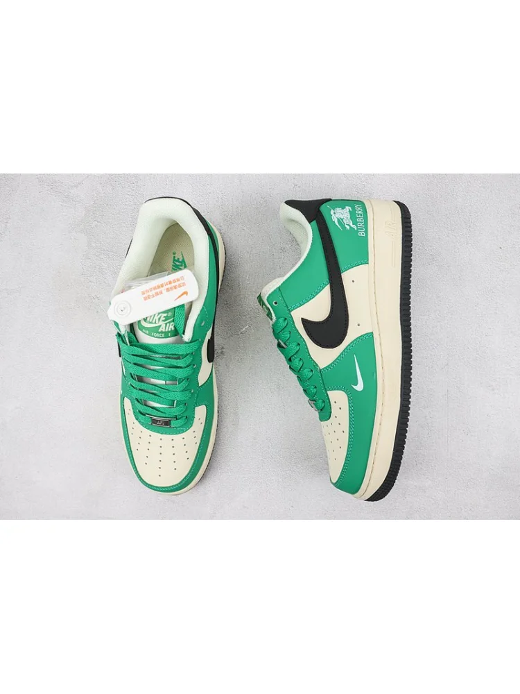 Burberry x Nike Air Force 1 Low "Beige White/Green/Black" - это коллаборация двух знаменитых брендов, Burberry и Nike, которая представляет собой классическую модель кроссовок Air Force 1 Low в стильном дизайне. Преимущества товара:- Уникальный дизайн: Кроссовки сочетают в себе элегантность и спортивный стиль, благодаря сочетанию нейтральных бежевых и черных оттенков с яркими зелеными акцентами.
