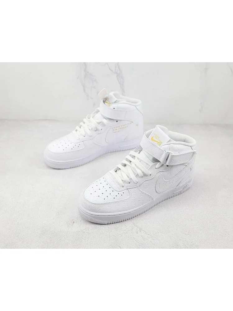 Louis Vuitton x Nike Air Force 1 Mid "Triple White/Metallic Gold" - это эксклюзивная коллаборация между двумя известными брендами, создающая уникальную модель кроссовок. Эти кроссовки сочетают в себе классический стиль Nike Air Force 1 Mid с роскошными деталями и дизайном Louis Vuitton. Преимущества товара:- Высокое качество материалов: кроссовки изготовлены из прочной и долговечной кожи, обеспечивая комфорт и долгий срок службы.