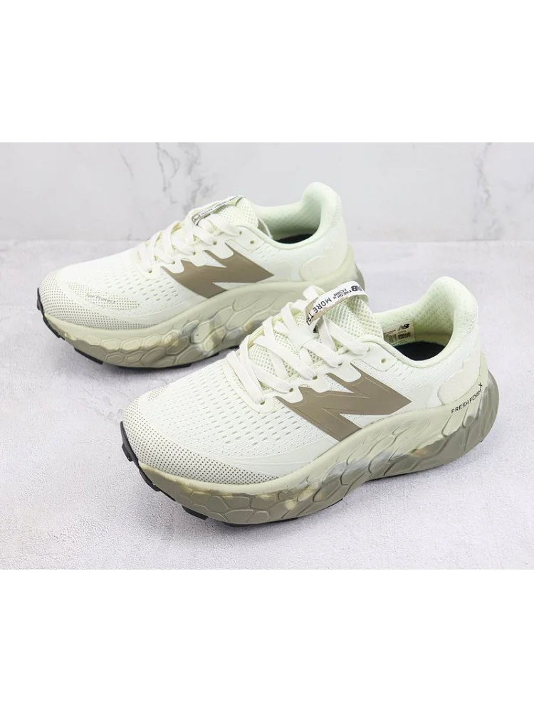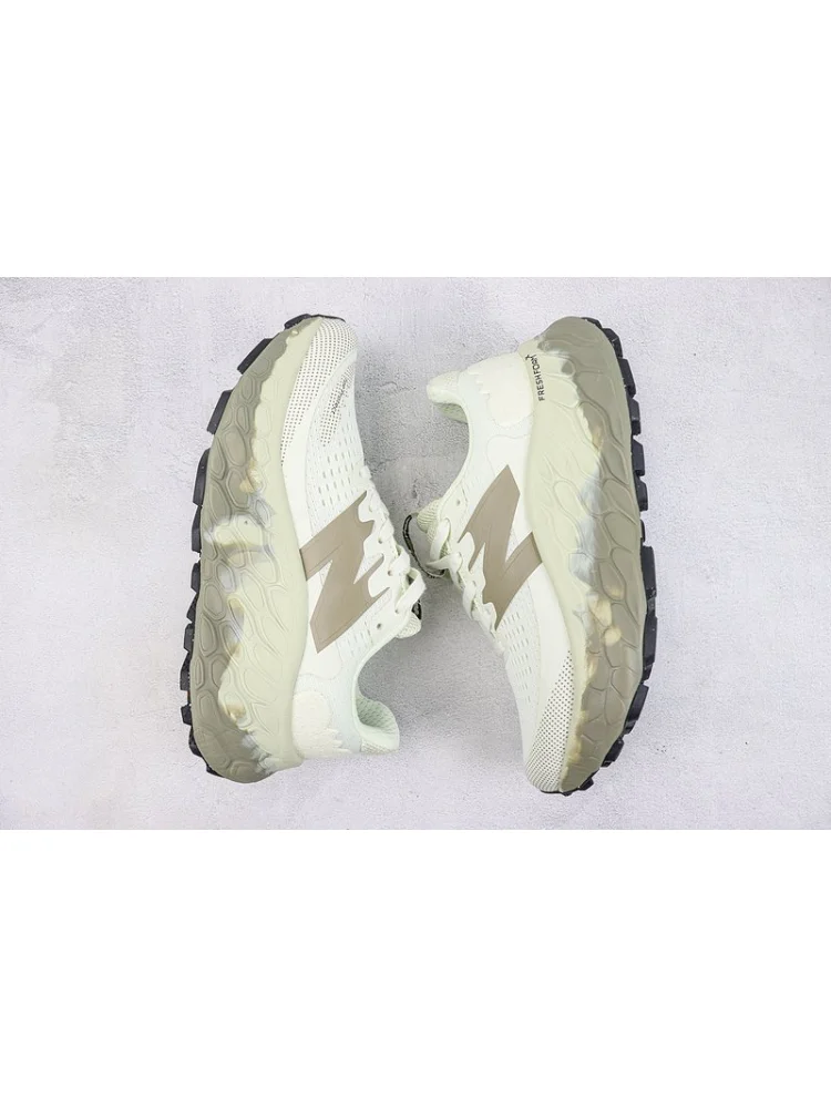 New Balance Fresh Foam X More Trail V3 - это стильные кроссовки в оливково-зеленом и кремовом цветах, которые идеально подойдут для активного образа жизни и тренировок на трассе.-