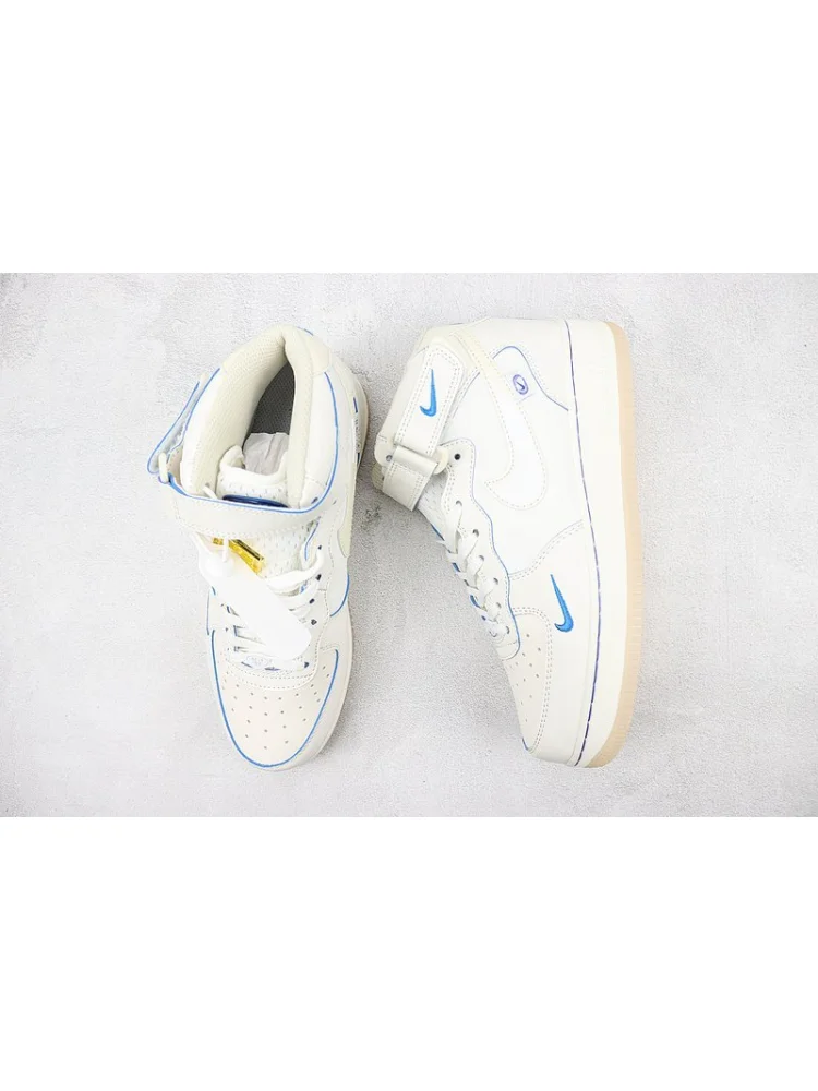 Nike Air Force 1 Mid "Wheat White/Light Blue" - это стильные кроссовки средней высоты, выполненные в ярком цветовом сочетании пшеничного белого и голубого.- Удобство: мягкая подошва и удобная посадка обеспечивают комфорт при ношении на протяжении всего дня.