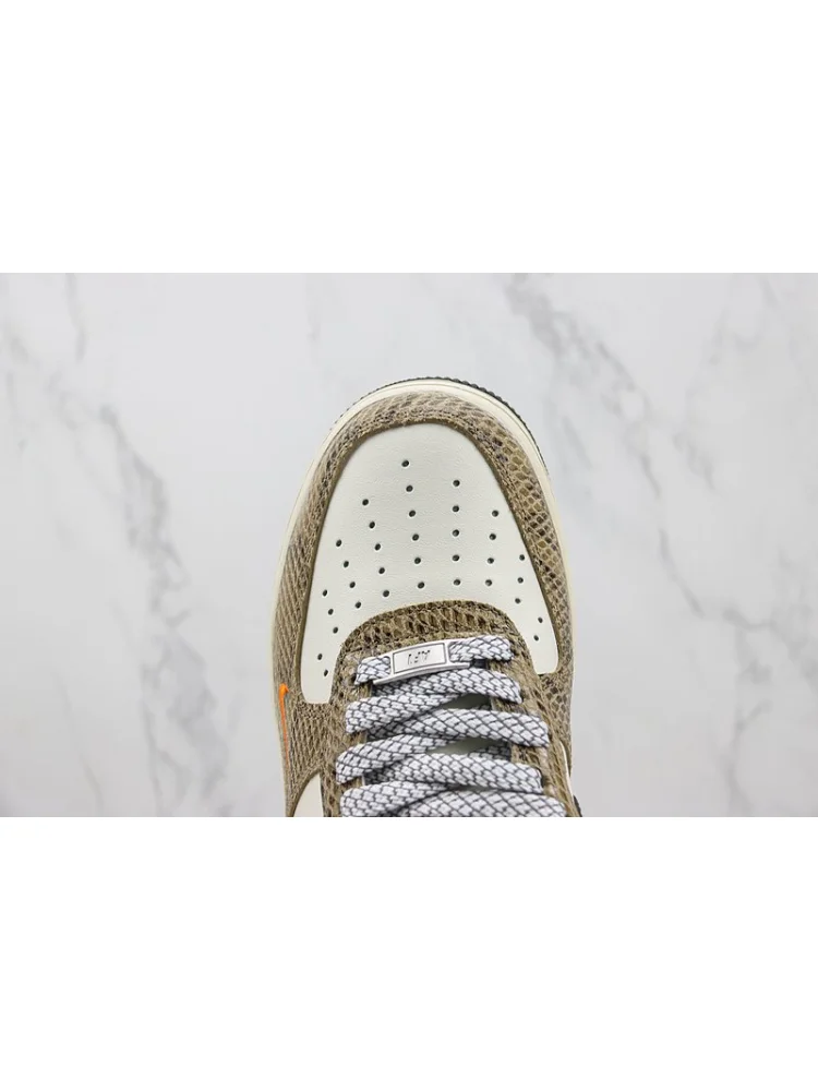 - Эксклюзивный дизайн: уникальная комбинация коричневого змеиного принта и классической модели Air Force 1 Low делает эти кроссовки стильными и привлекательными.