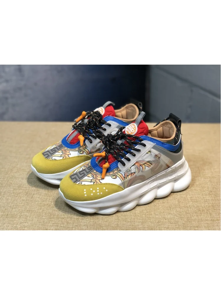- Эксклюзивность: Versace Chain Reaction "White/Yellow and Baroque" - это лимитированная модель, что делает их еще более привлекательными для ценителей моды и коллекционеров.